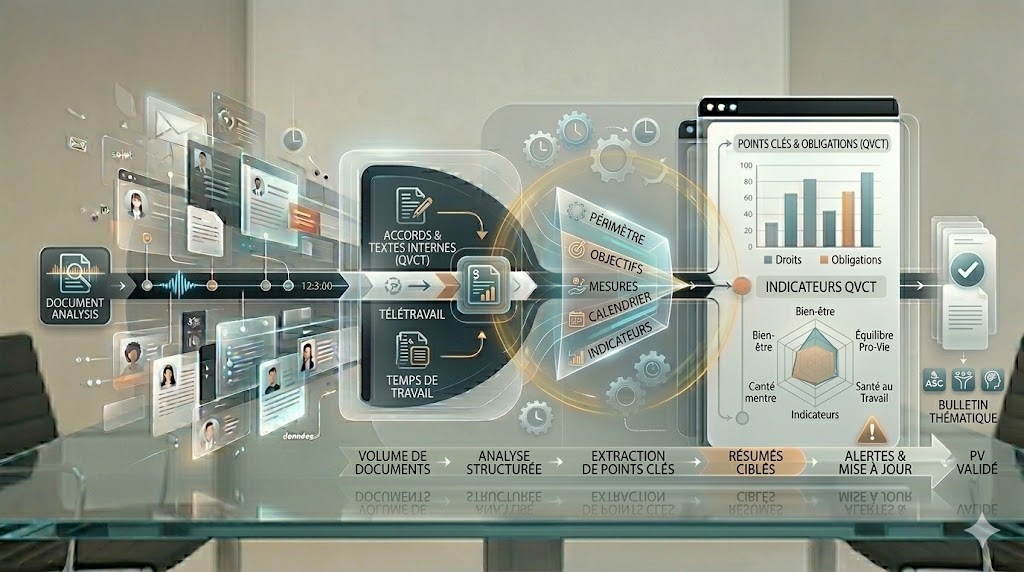 Comment produire une synthèse opérationnelle d’un accord QVCT : objectifs, mesures, indicateurs, alertes de mise à jour, sans “réécrire le droit”.